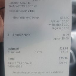 Excellent as usual. Good food fast service. Approximately 20$ for two wraps. Ordered the gyro and chicken